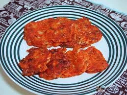 - 김치전이 골드 브라운으로 바삭하게 익으면 접시에 담아 내놓습니다.